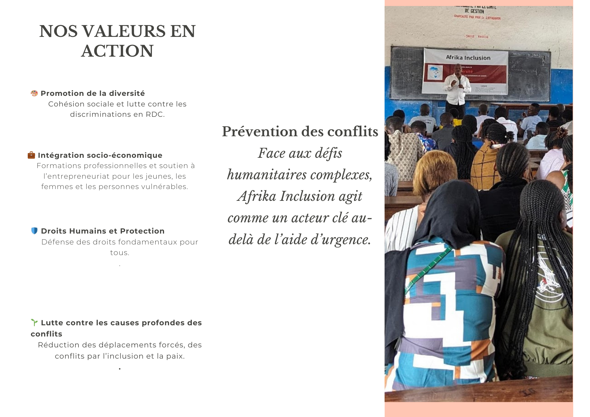 - L’implication des jeunes et des femmes dans la prévention des conflits;
